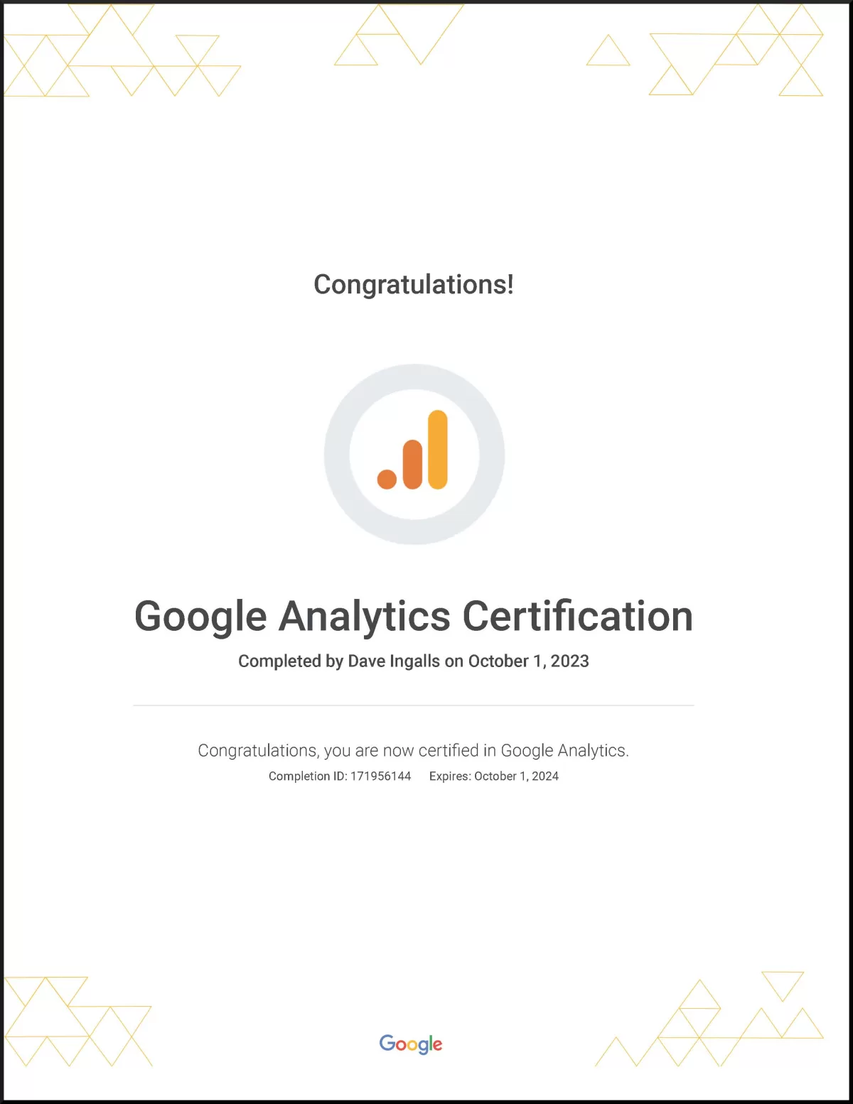 eMarketing Institute SEO Certificate-Dave Ingalls.com